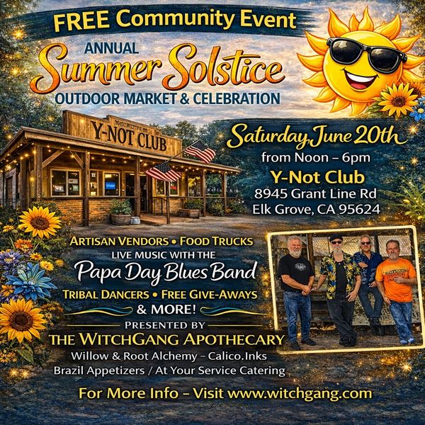 You can browse their wares in person, shop online, or catch one of their popular Facebook LIVE Sales Shows—a tradition in their private VIP group for over six years. WitchGang Apothecary has been a driving force behind some of Sacramento’s most beloved events since 2016, from the monthly Full Moon Markets to the Summer Solstice Market & Celebration, Witches Samhain Soiree, and the festive