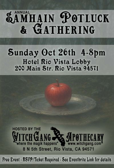 RSVP and tickets are essential—reserve your free spot through our event link, as space is limited. If you wish to contribute to the feast with a cash offering, email ela@witchgang.com or send support via Venmo (@WitchGang).