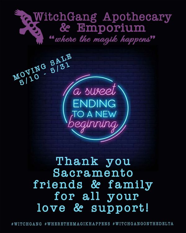 We’re moving! But before we get into the details, let’s rewind for a second. Since 2016, we’ve been part of the Sacramento Witchy scene — throwing events for our local Pagan and Witch community, hosting wild and wonderful LIVE sales online, and finally opening our magikal shop in the Tahoe Park/Colonial Heights neighborhood. From the start, it wasn’t just about selling magikal stuff — it was about building a real, in-person community. We’ve loved seeing you all at our Full Moon Markets, Solstice gatherings, Samhain parties, and Yule celebrations. We made some long-lasting connections and had some ‘real talks’ at our Evenings at The Emporium. Every “hello” at our door has meant the world to us and every single one of you that has stopped by to see “where the magik happens” has touched our soul.